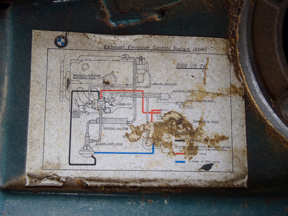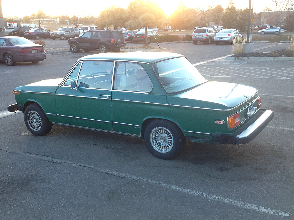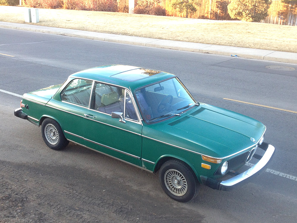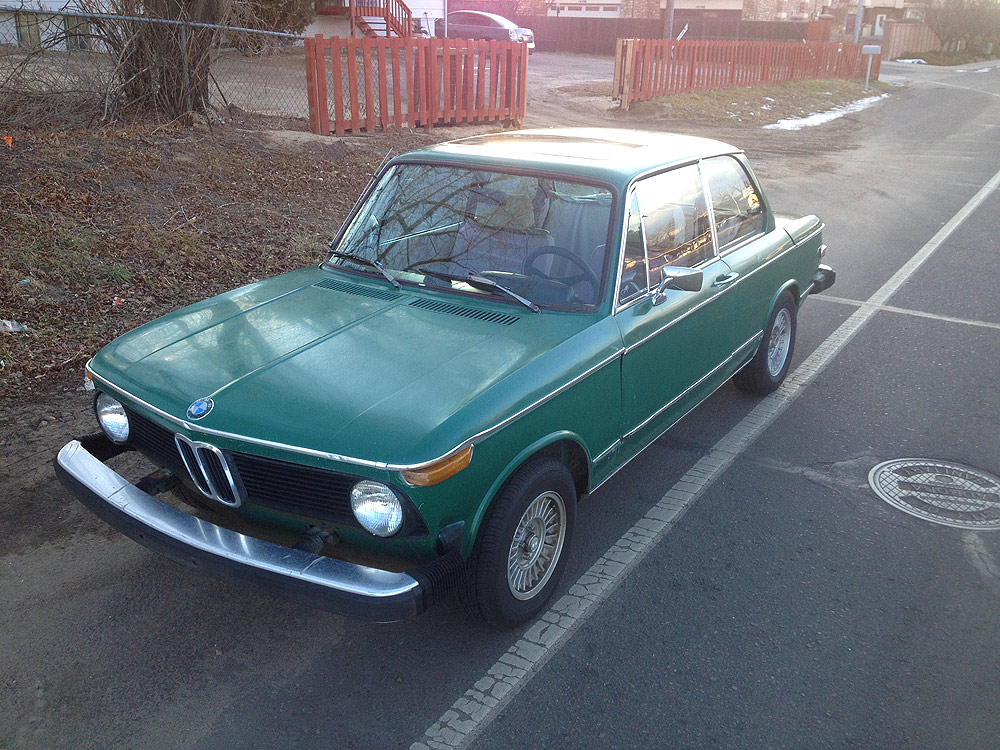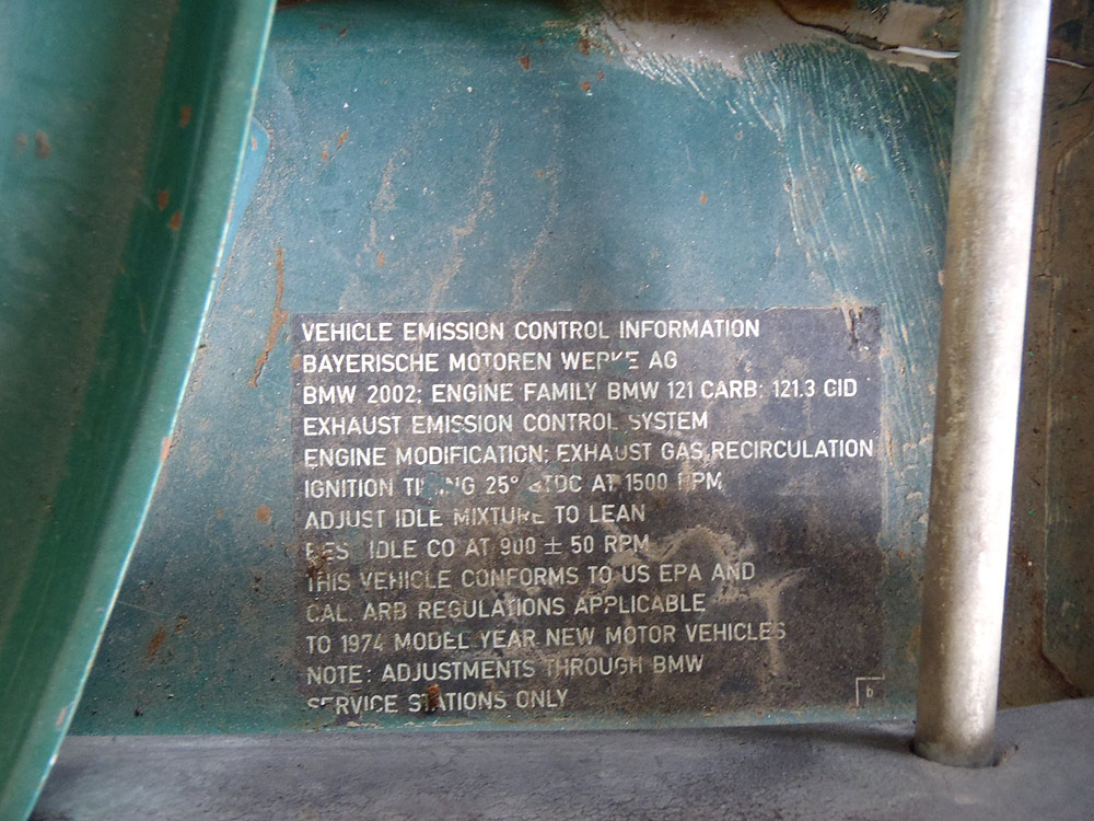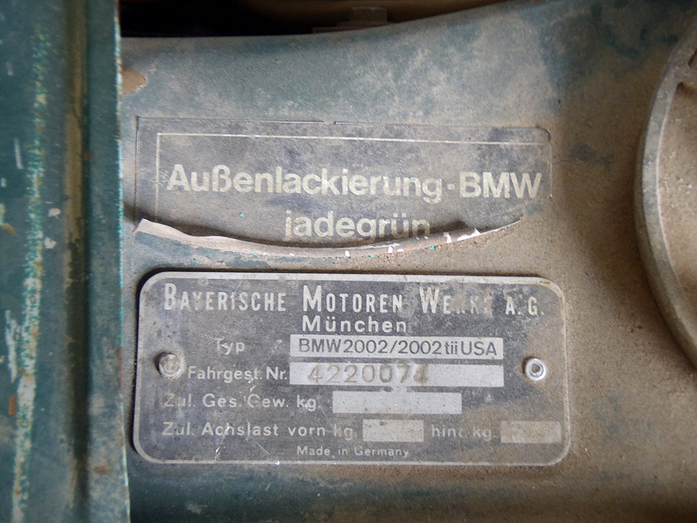 see also wikipedia) more commonly known as the BMW '02 Series. I surmise it was built during the first month of production, September of 1973. Although 77639 BMW 2002s were built in all, this 74th 1974 is a distinguished item. Only 1328 of these vehicles were built before the turn of the calendar year.
