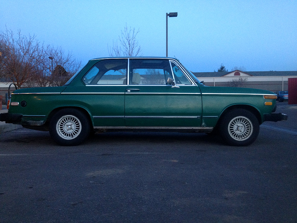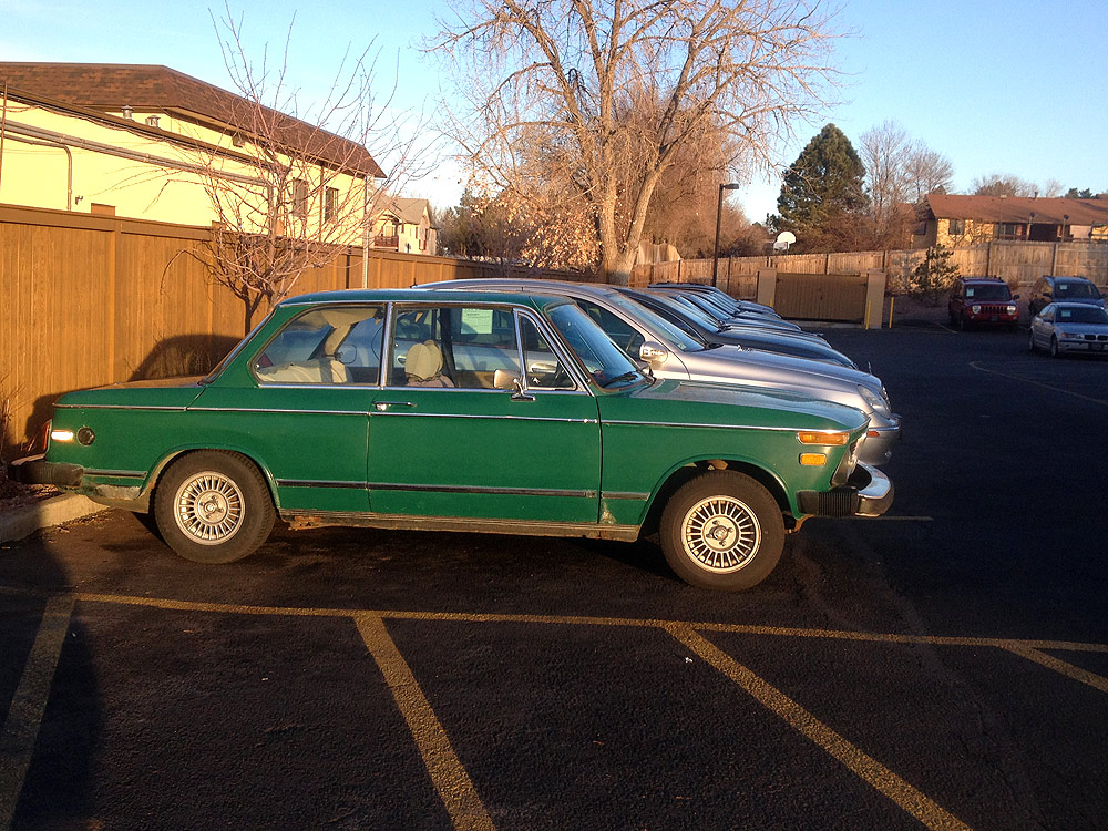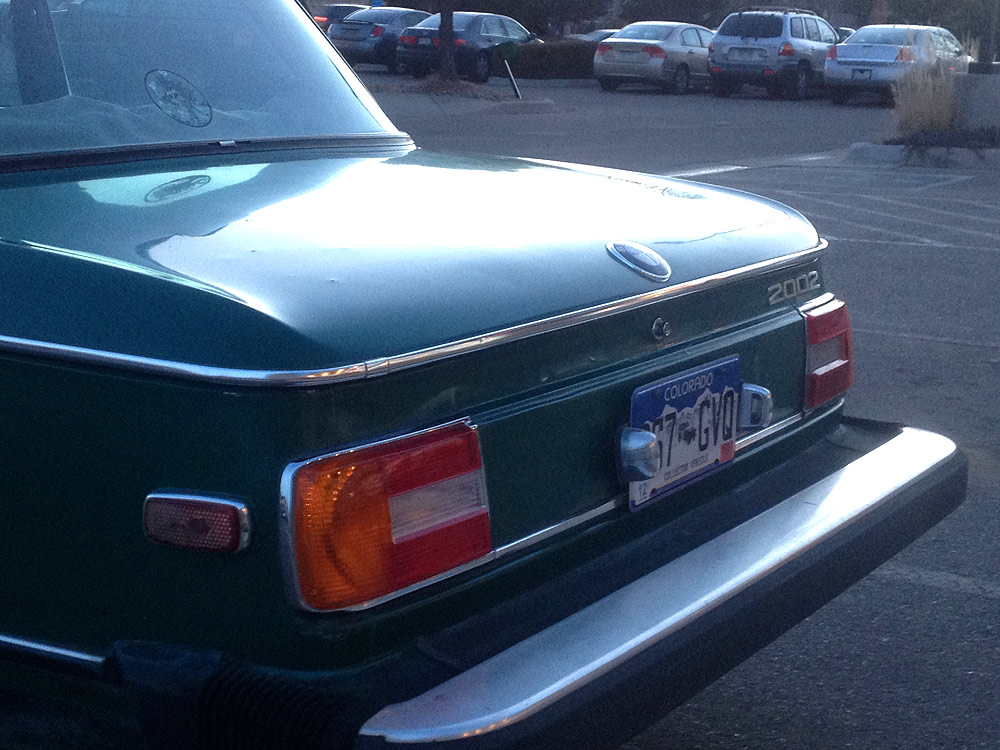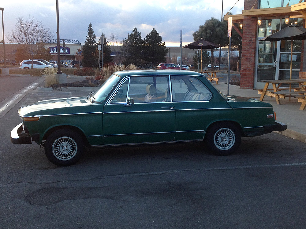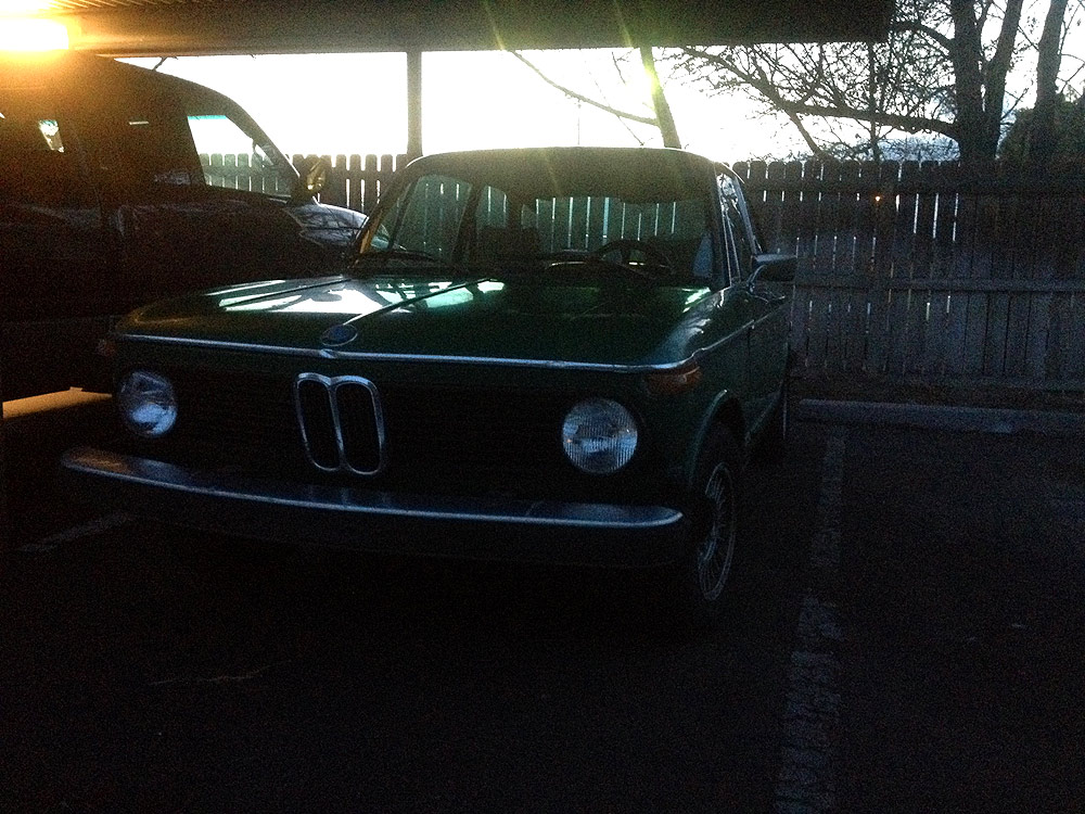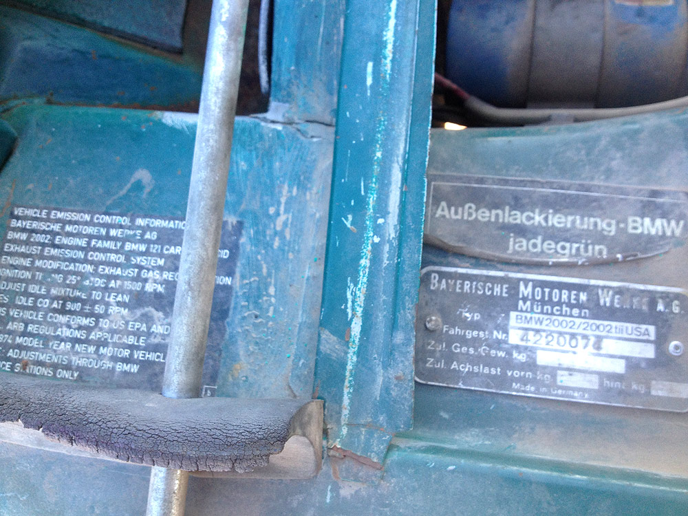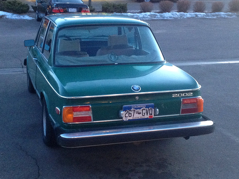 see also wikipedia) more commonly known as the BMW '02 Series. I surmise it was built during the first month of production, September of 1973. Although 77639 BMW 2002s were built in all, this 74th 1974 is a distinguished item. Only 1328 of these vehicles were built before the turn of the calendar year.