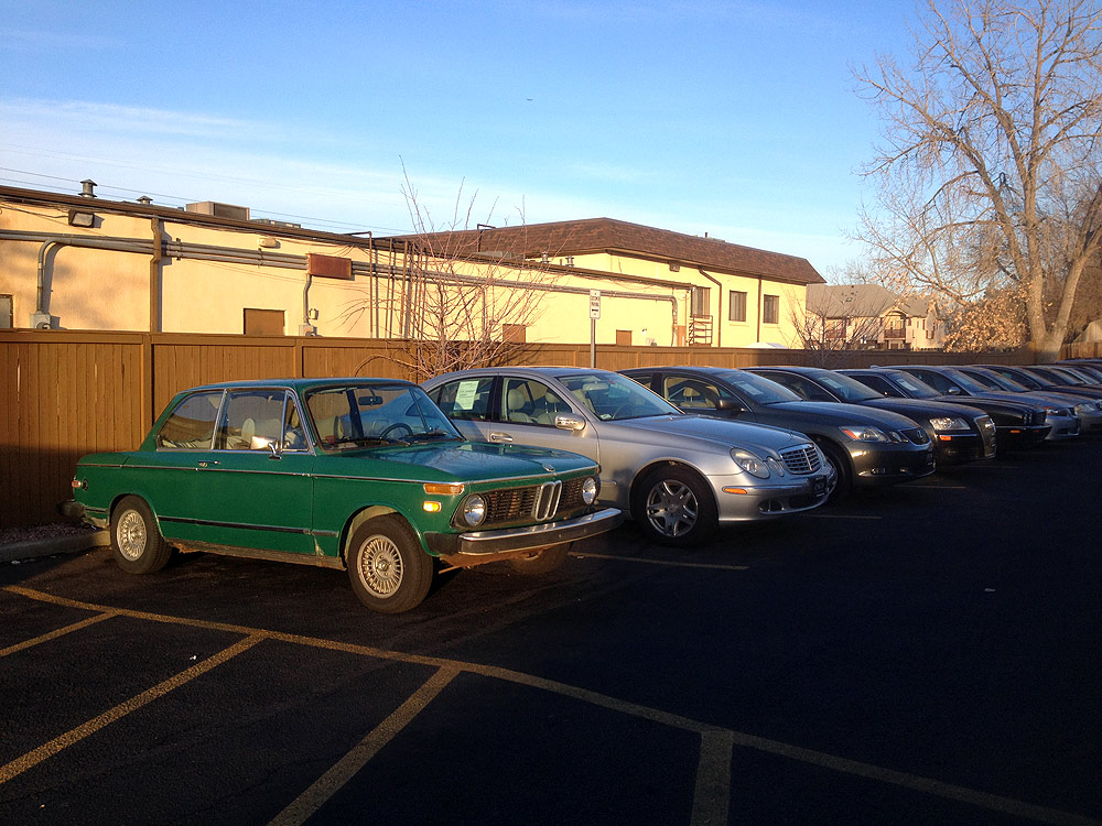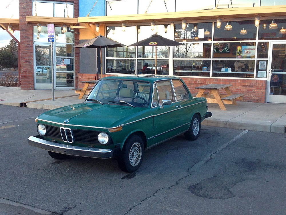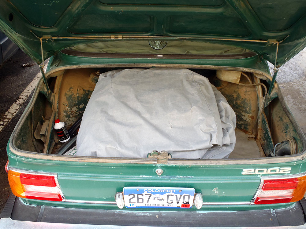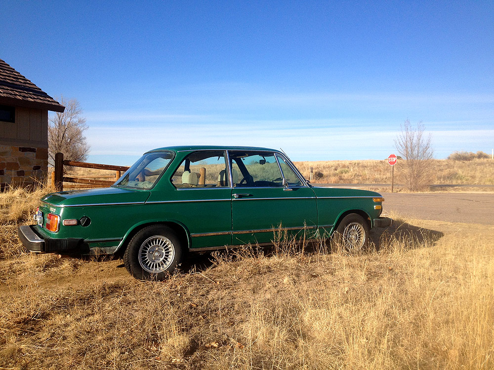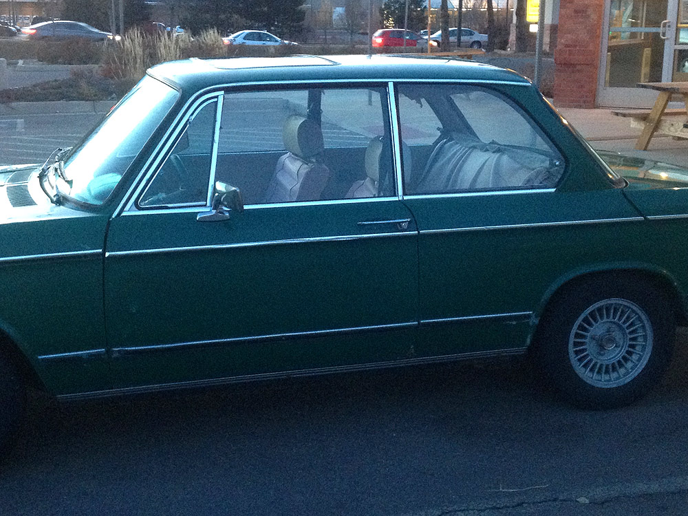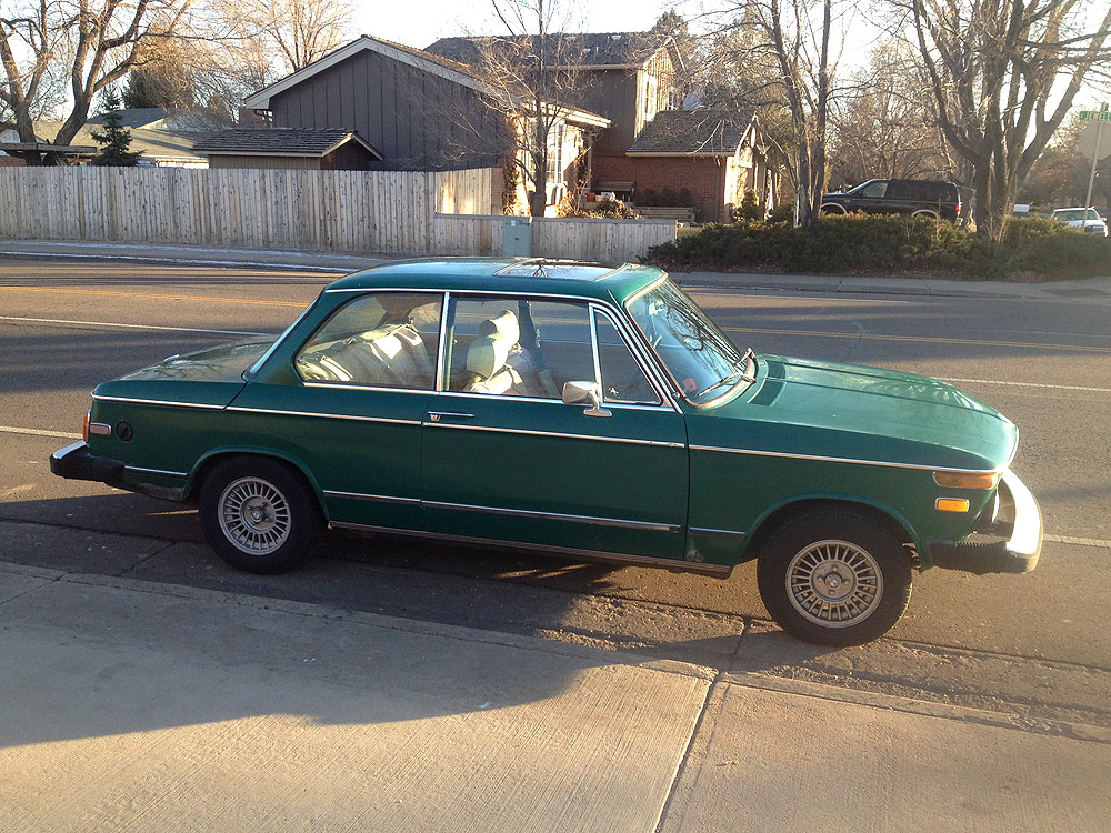 see also wikipedia) more commonly known as the BMW '02 Series. I surmise it was built during the first month of production, September of 1973. Although 77639 BMW 2002s were built in all, this 74th 1974 is a distinguished item. Only 1328 of these vehicles were built before the turn of the calendar year.