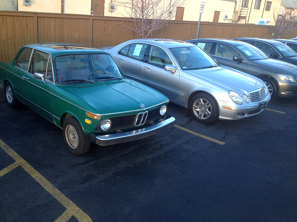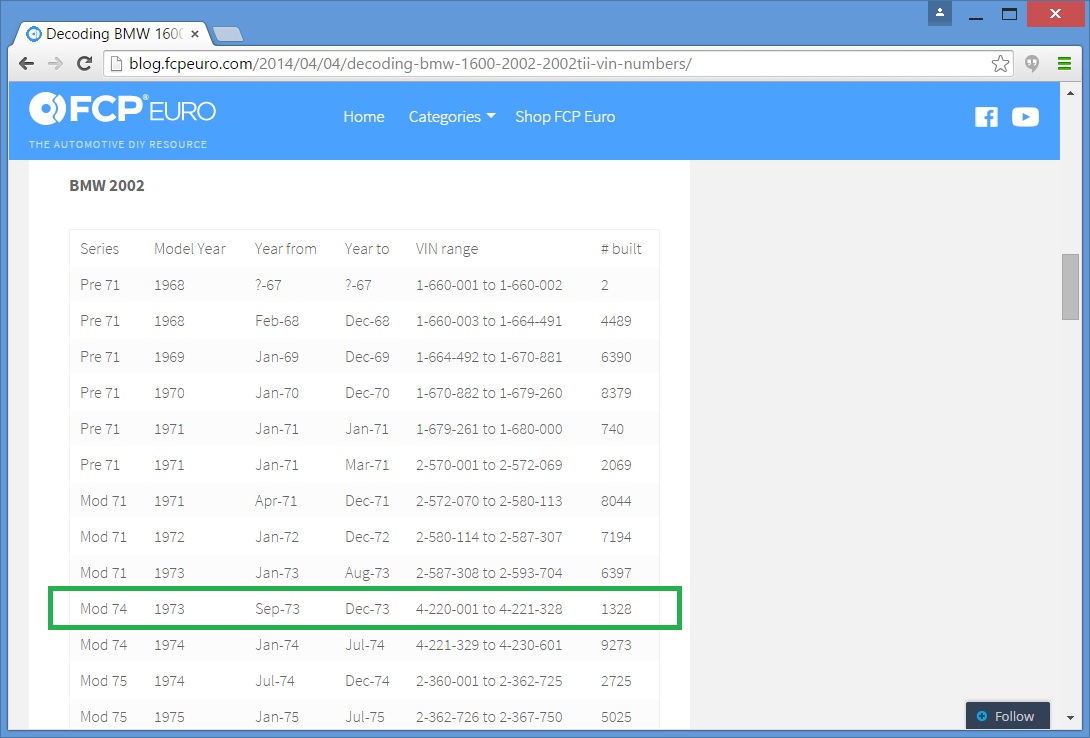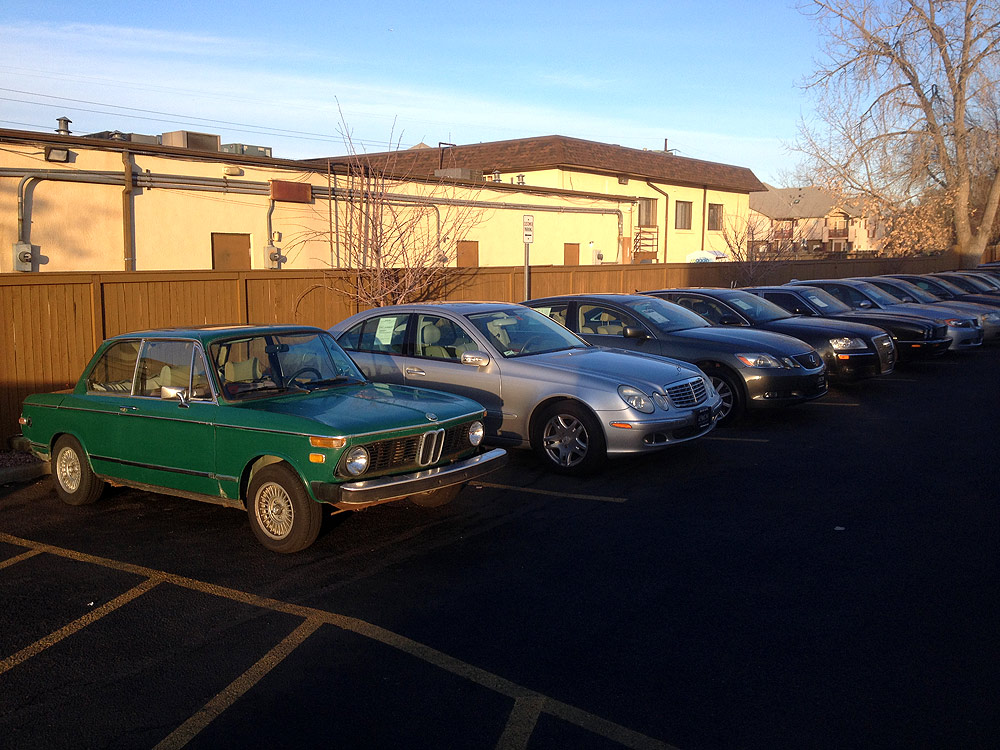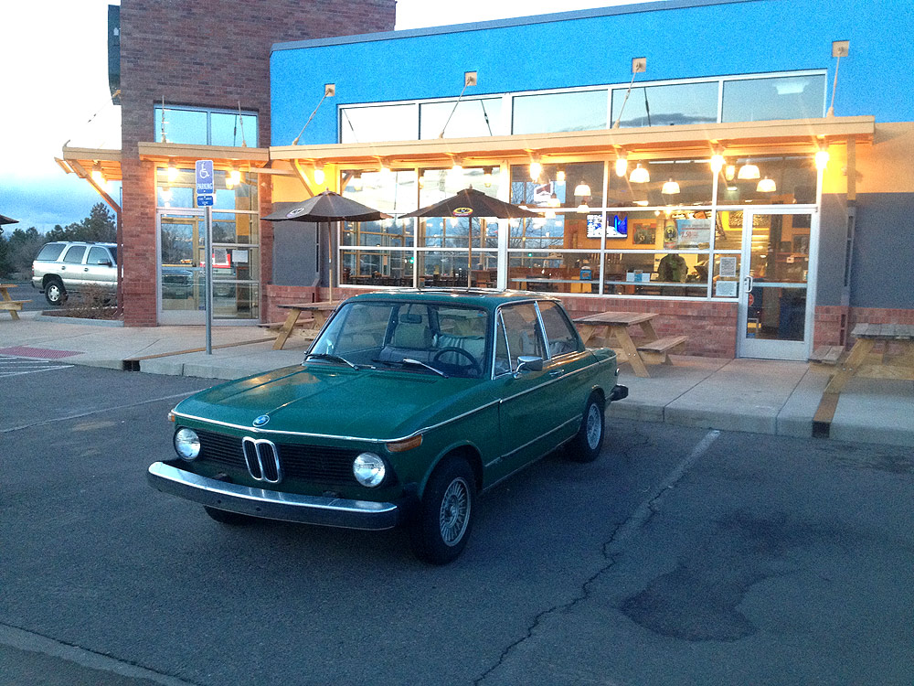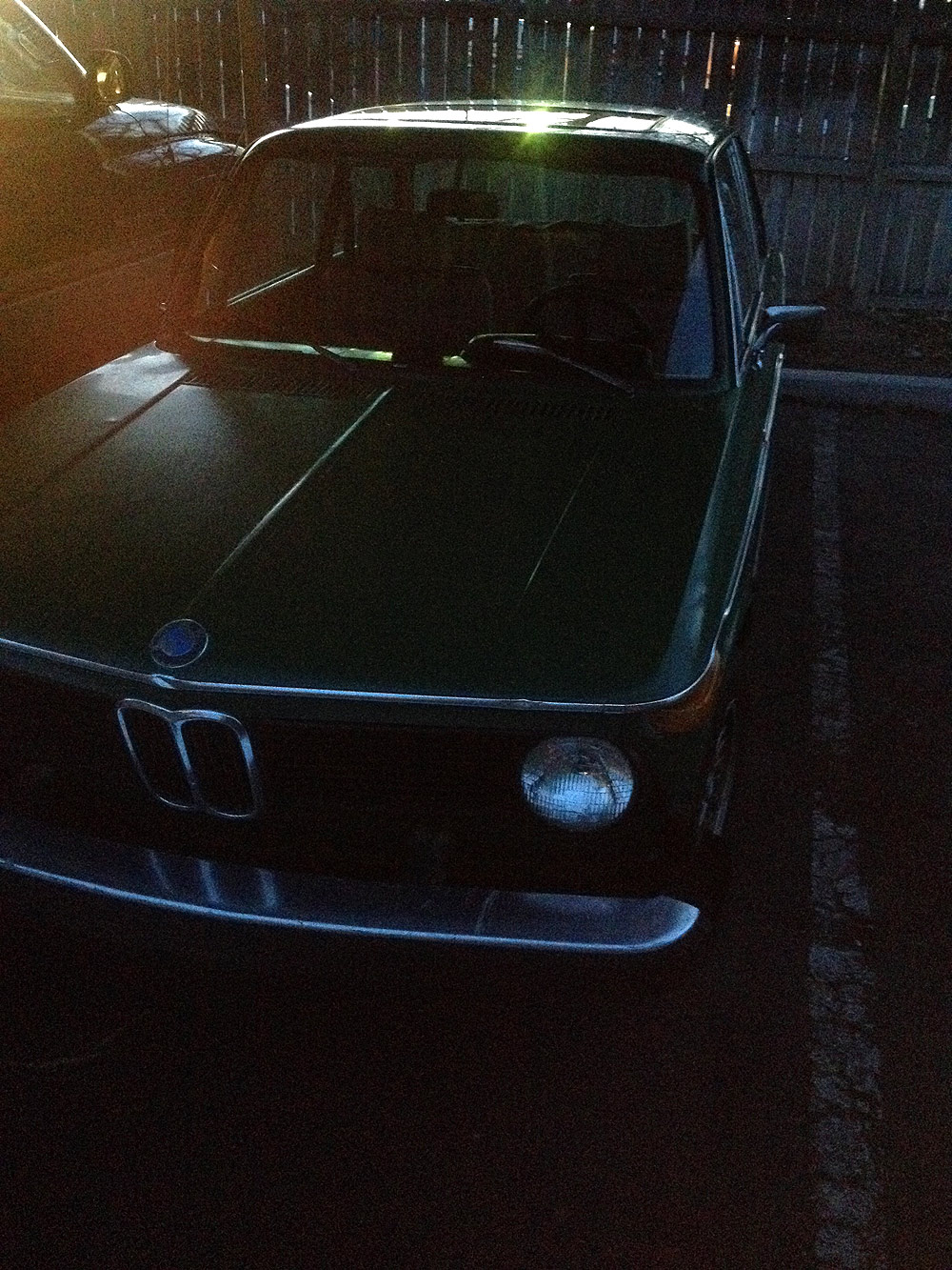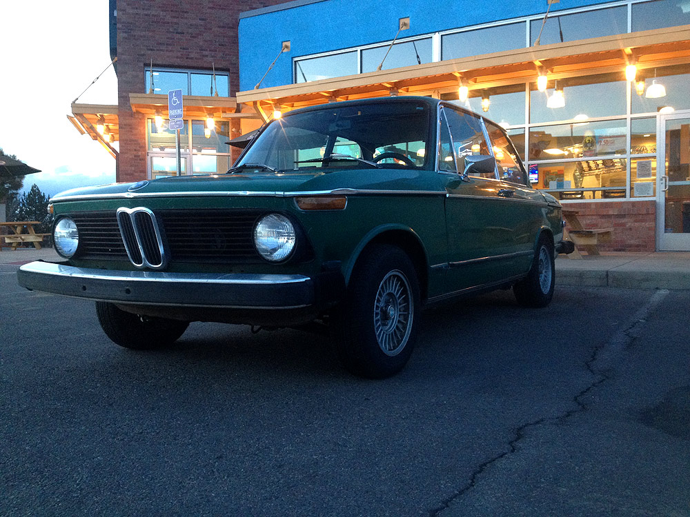 see also wikipedia) more commonly known as the BMW '02 Series. I surmise it was built during the first month of production, September of 1973. Although 77639 BMW 2002s were built in all, this 74th 1974 is a distinguished item. Only 1328 of these vehicles were built before the turn of the calendar year.