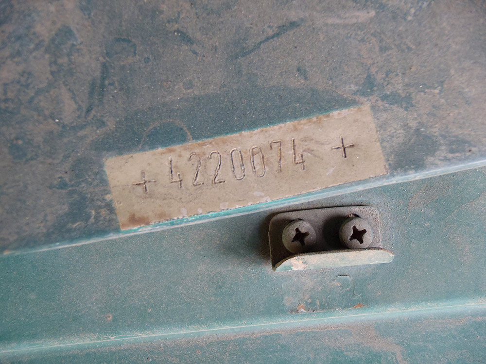 Gear shift lever is operable but wants new rubber bushings to restore accurate movement. Motor mounts are similarly worn with age. Vibration can be felt and heard under power in first gear. The car has its original factory 4-speed manual transmission. Synchronizers for second gear are less effective than other gears, due to age and wear. Otherwise the powertrain feels smooth.